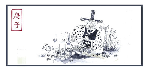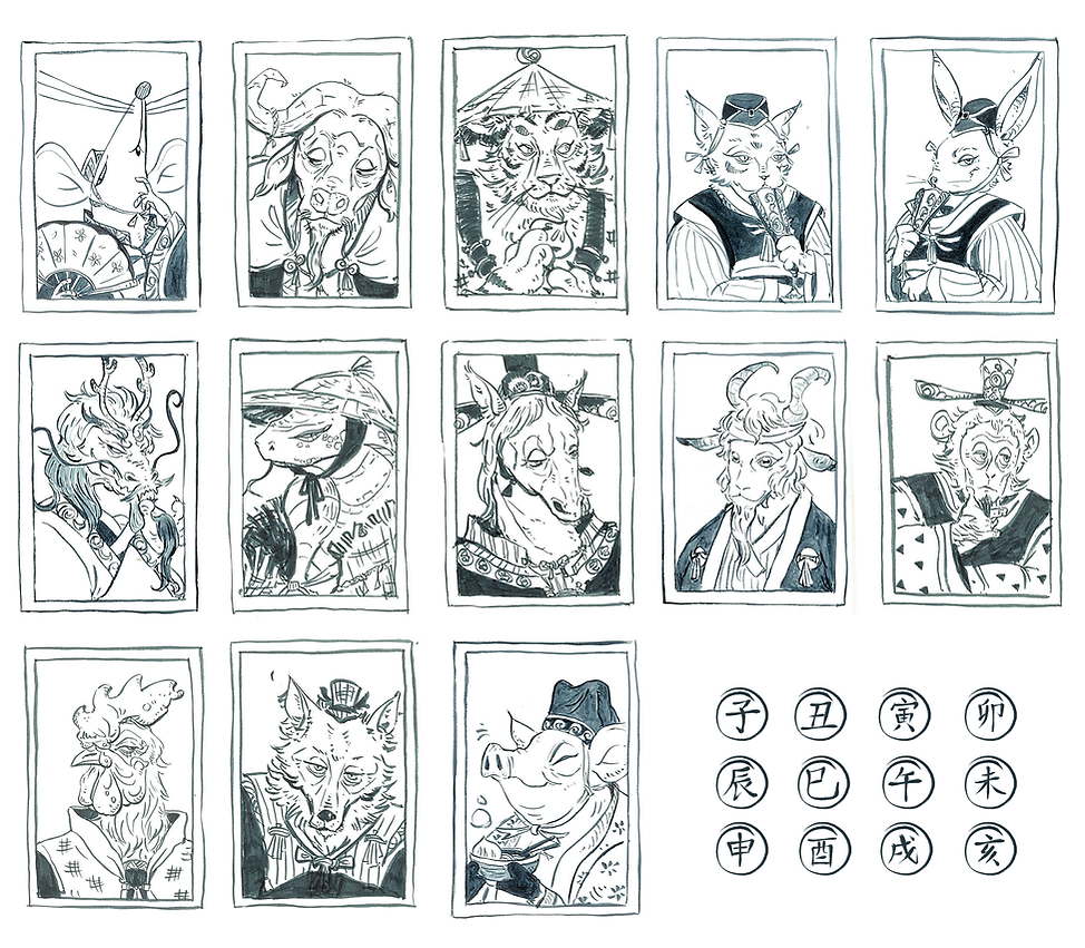 An independent, hand-sewn mini booklet made for 2020 Lunar New Year. Hand drawn with chinese ink and colored digitally.